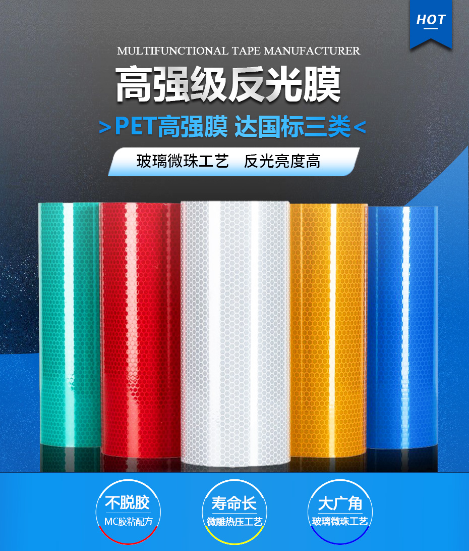 【產(chǎn)品材質(zhì)】PET/PC/PMMA,反光性能優(yōu)異,可用于各種公路,鐵路,航道和城市主干道的交通標志導向牌,指示牌,礦山機場安全牌,以及車輛,船舶的車身反光貼膜