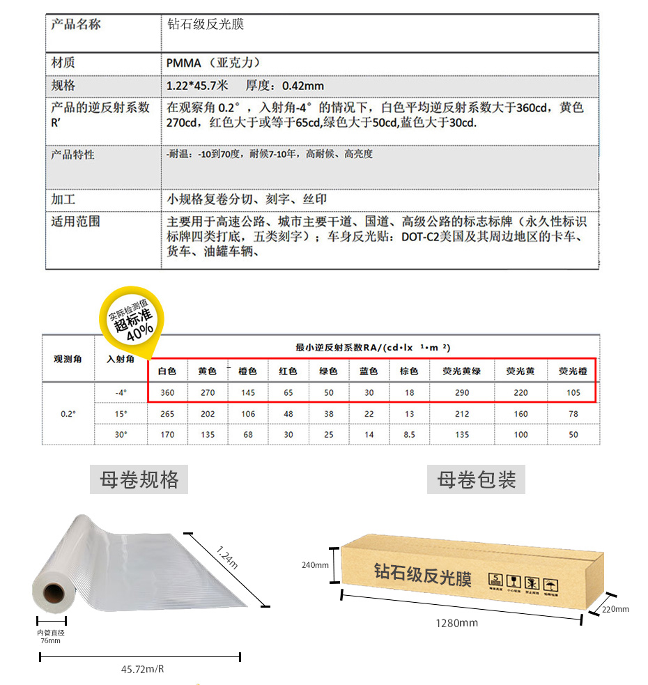 反光亮度高,耐候性好
